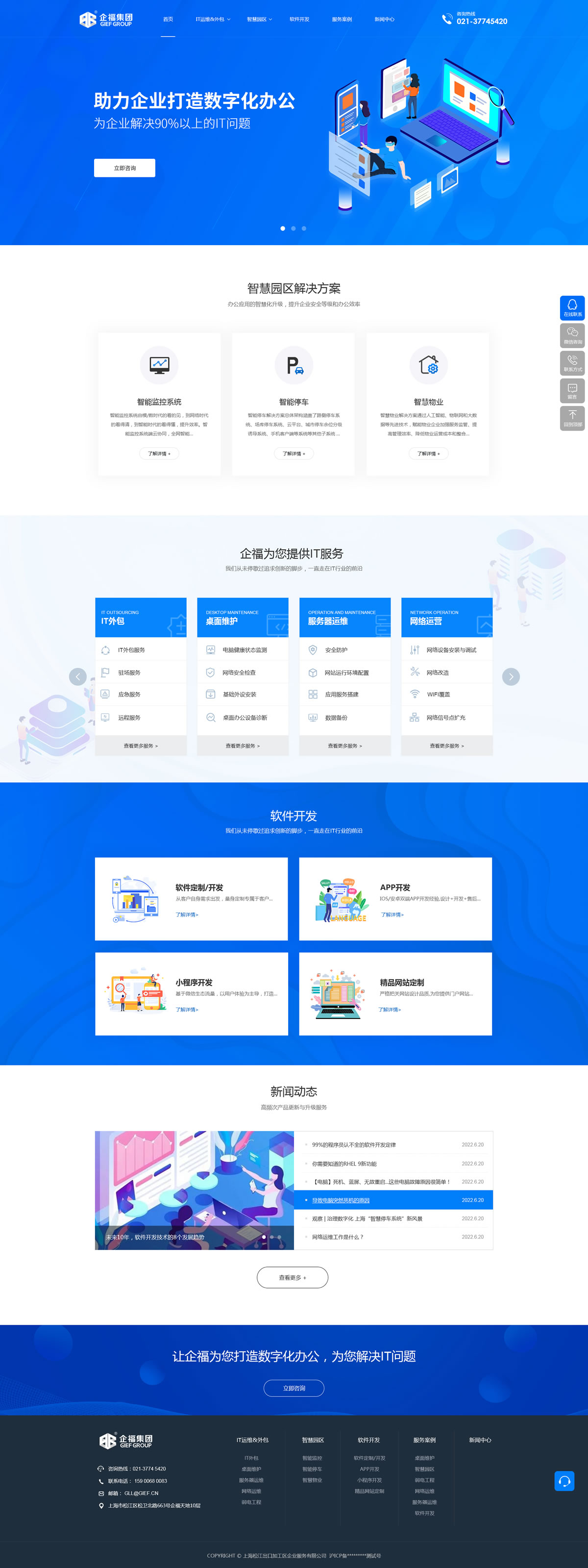 企福集团为企业提供一站式IT外包服务,业务领域涵盖it外包,it运维,弱电工程;智慧园区包含智慧停车,智慧物业,智慧监控,以及企业的网站,软件定制开发。